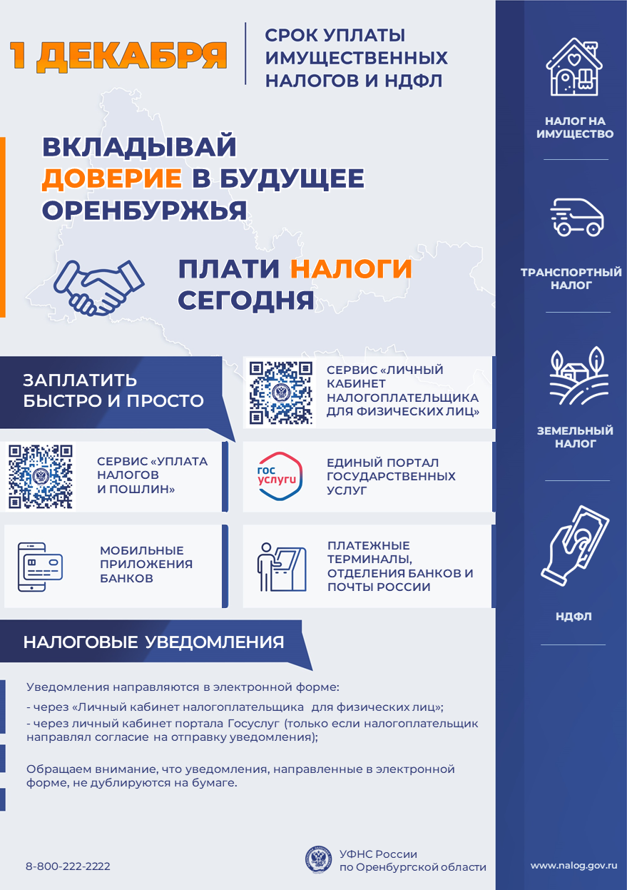 1 декабря срок уплаты имущественных налогов и НДФЛ